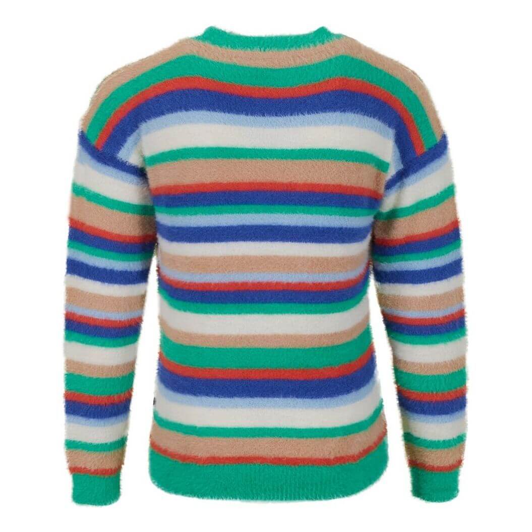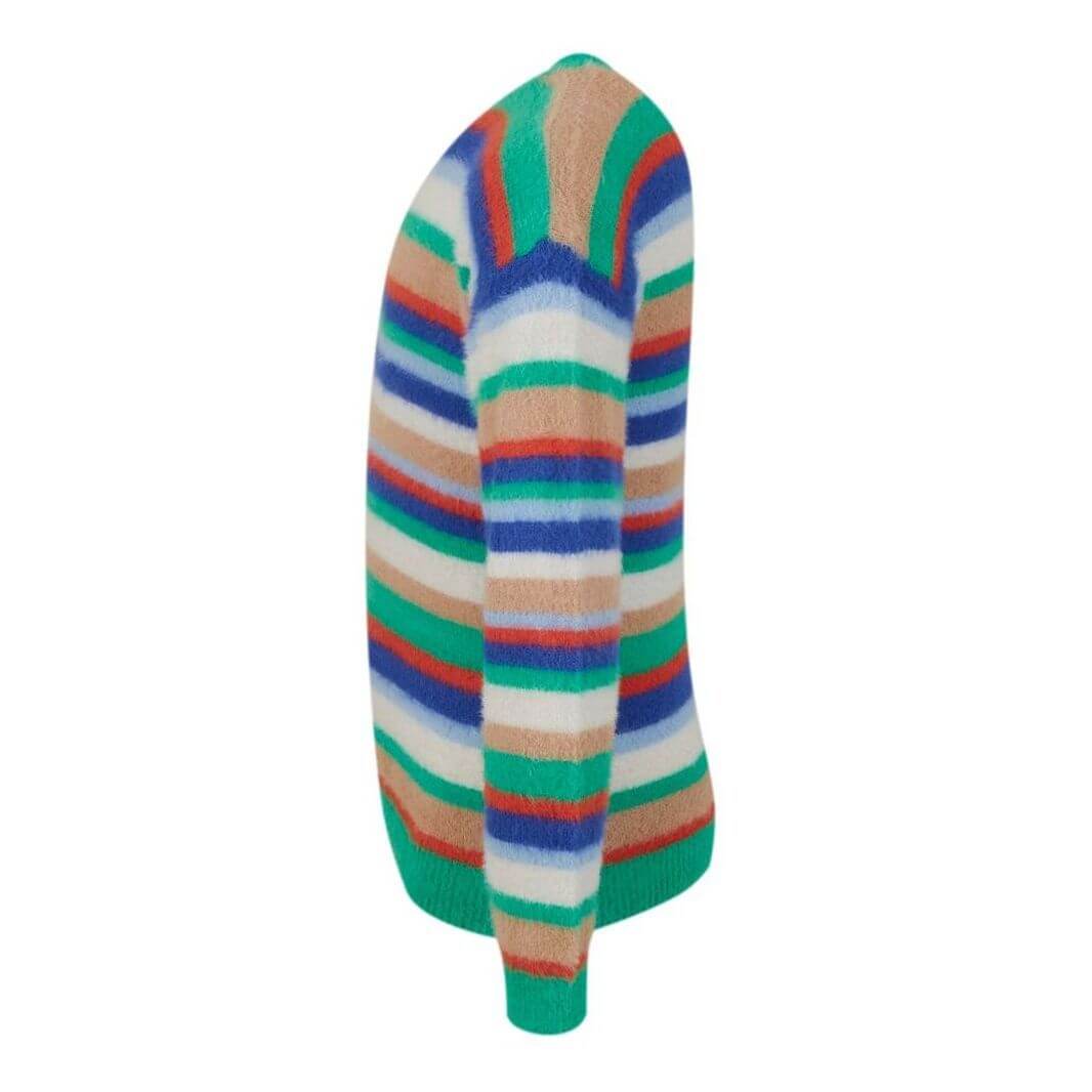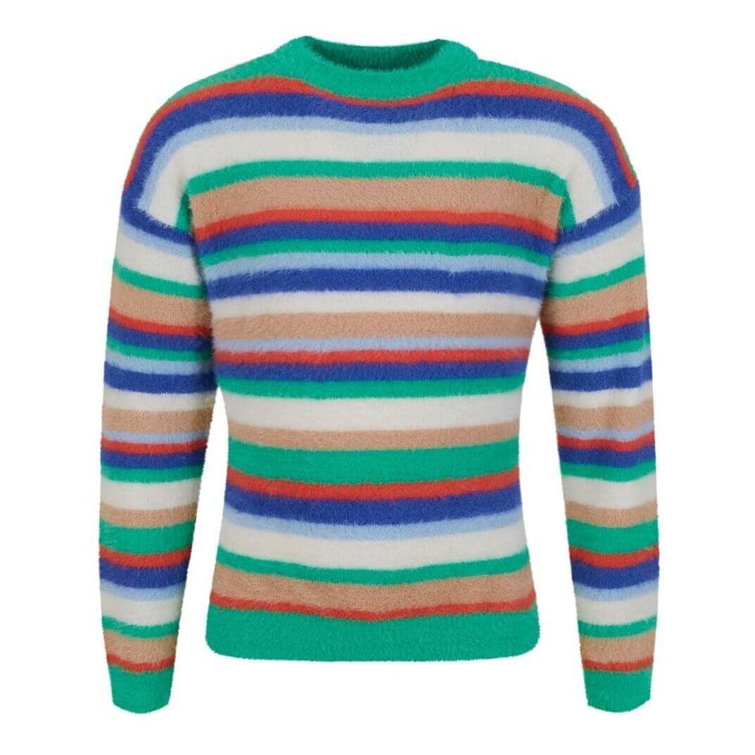 Een heerlijke zachte trui met vrolijke, meerkleurige strepen. 💕