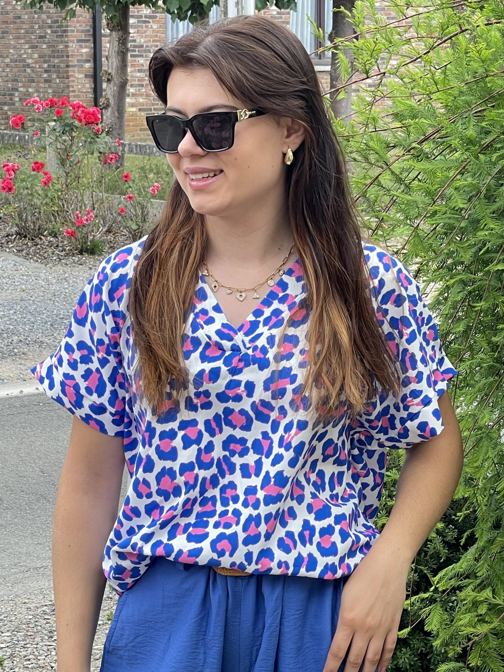 Blouse met print roze en blauw