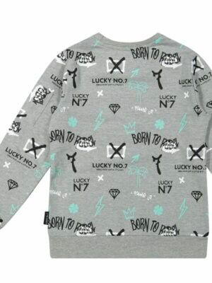 Blue Seven sweater met rits met all-over print hartjes, goed te combineren met Blue Seven broek. Verkrijgbaar in de maten 92 tot 128.