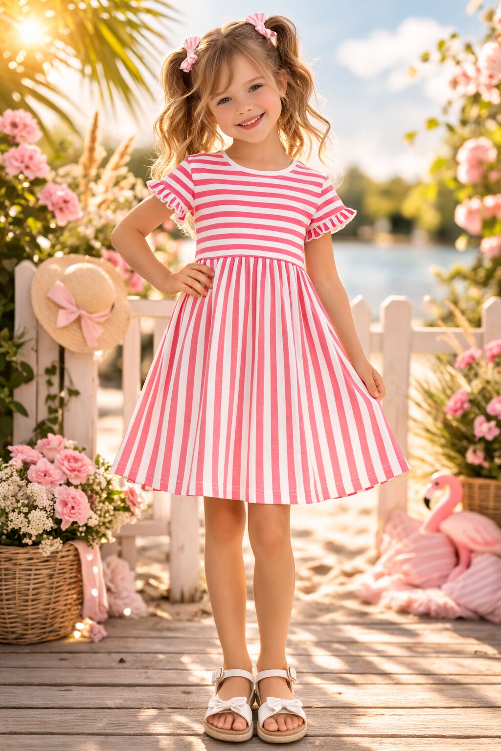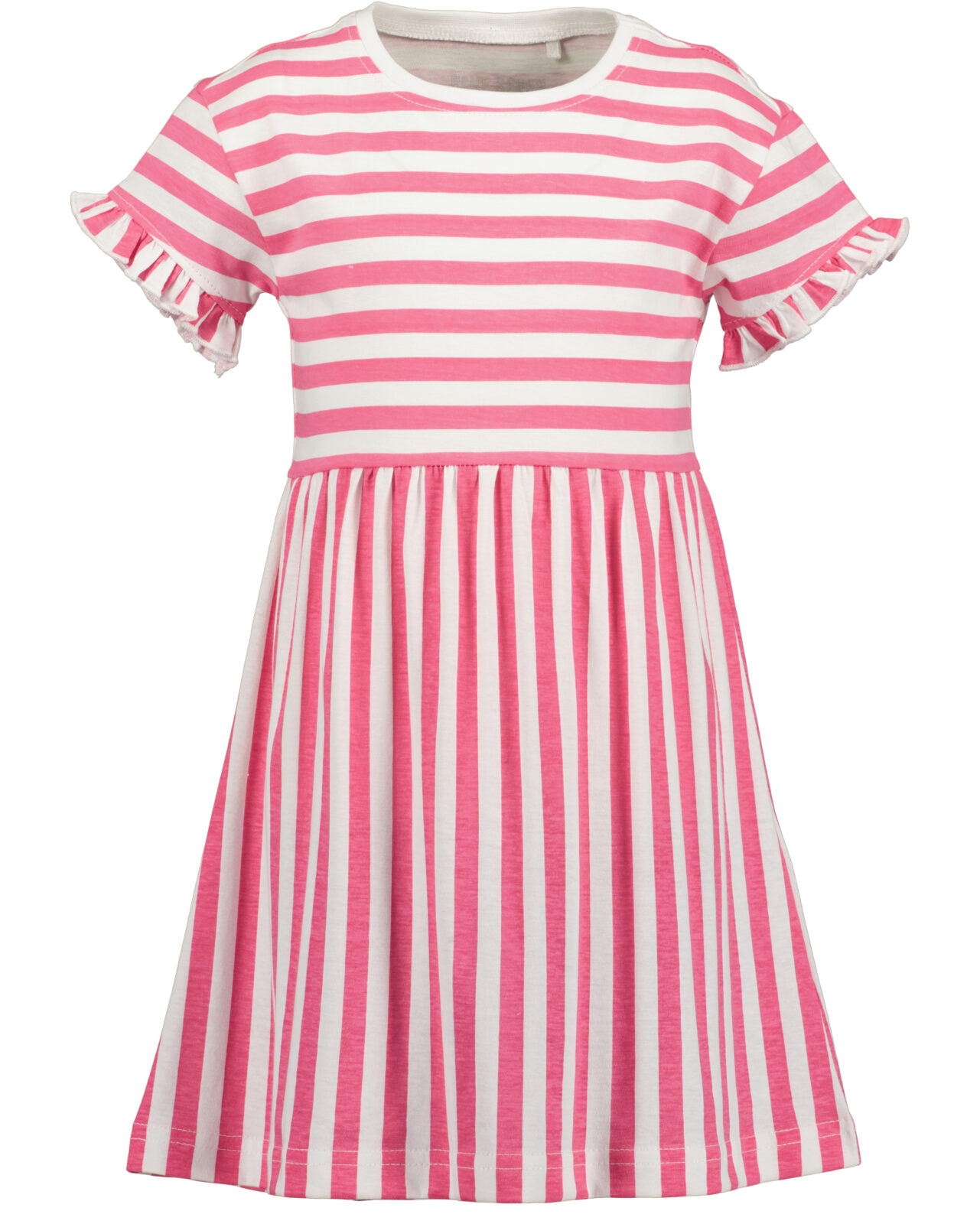 Blue Seven jurk streepjes roze en ruches aan de mouwen!