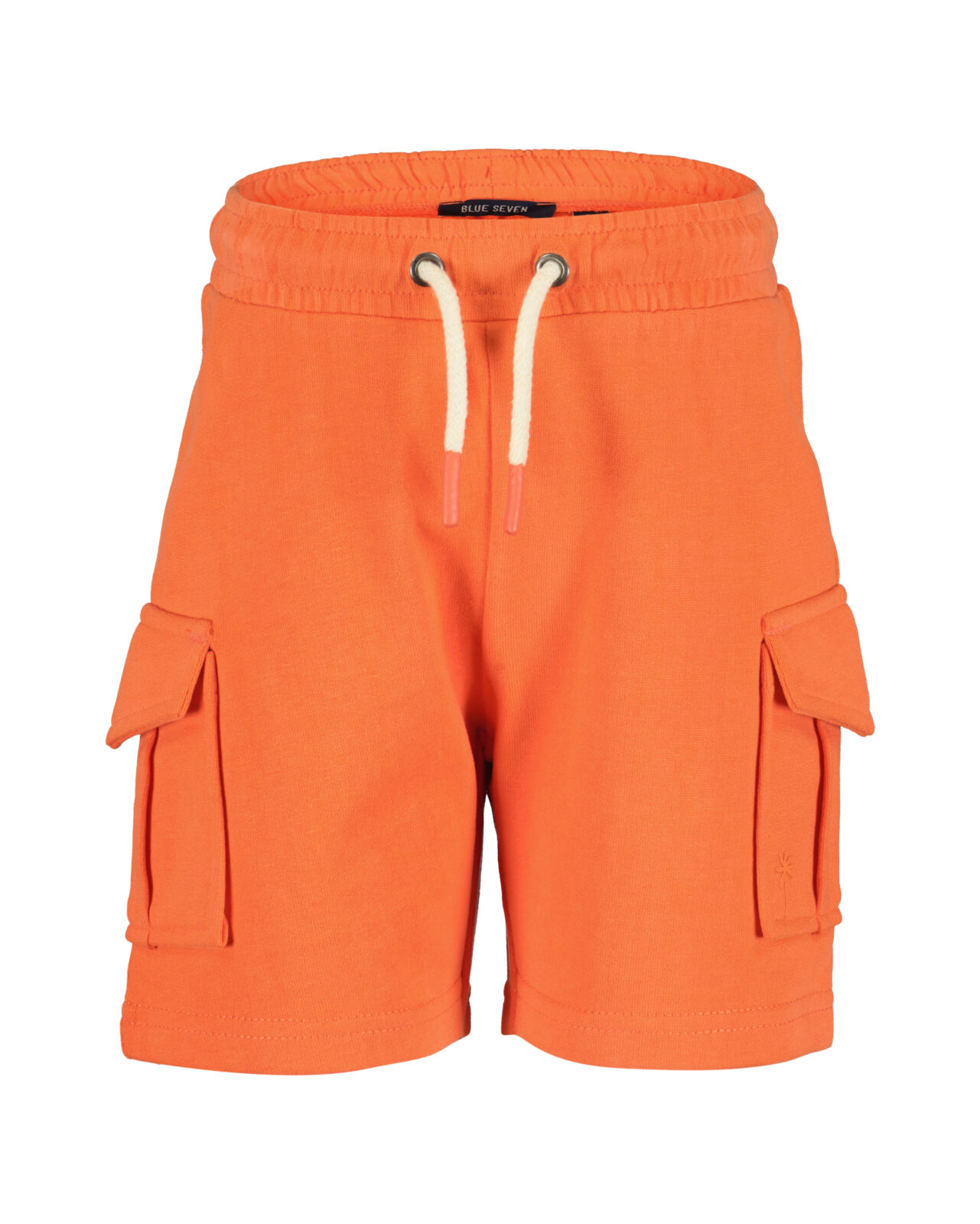 Deze Blue Seven jogging short in het oranje is een stoer en comfortabel item, uitgevoerd in een cargo stijl. De korte broek is voorzien van opvallende klepzakken op de zijkanten. De jongens short heeft een brede, elastische tailleband met een wit aantrekkoord, waardoor hij altijd perfect aansluit en comfortabel zit tijdens het spelen.
