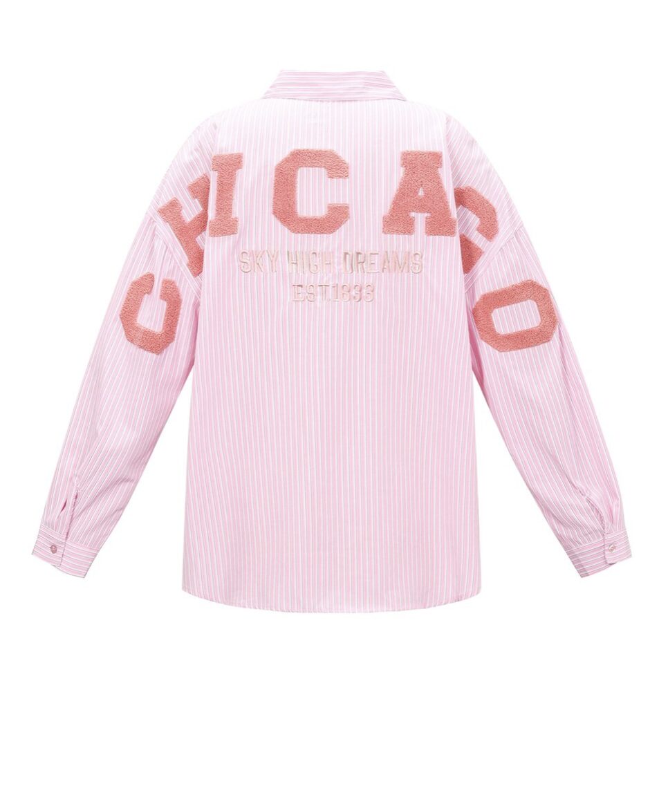Dit katoenen damesoverhemd heeft een moderne, casual uitstraling en is comfortabel dankzij de oversized pasvorm. De opvallende letterprint op de rug geeft het overhemd een stoere, trendy look die perfect past bij een urban stijl. De knoopsluiting en nette afwerking zorgen voor een goede kwaliteit en fijn draagcomfort.