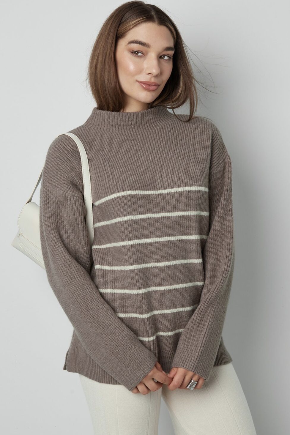 Deze gebreide katoenen trui met kraag combineert tijdloze elegantie met een moderne uitstraling. Het kraagontwerp biedt extra warmte en een verfijnd silhouet, geschikt voor zowel zakelijke als casual settings. Het horizontale streeppatroon voegt subtiele visuele diepte toe. Ontwikkeld volgens de Gimme-merkstandaard staat deze trui garant voor duurzaamheid, consistente kwaliteit en eigentijdse stijl.