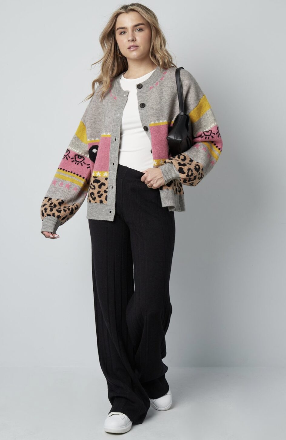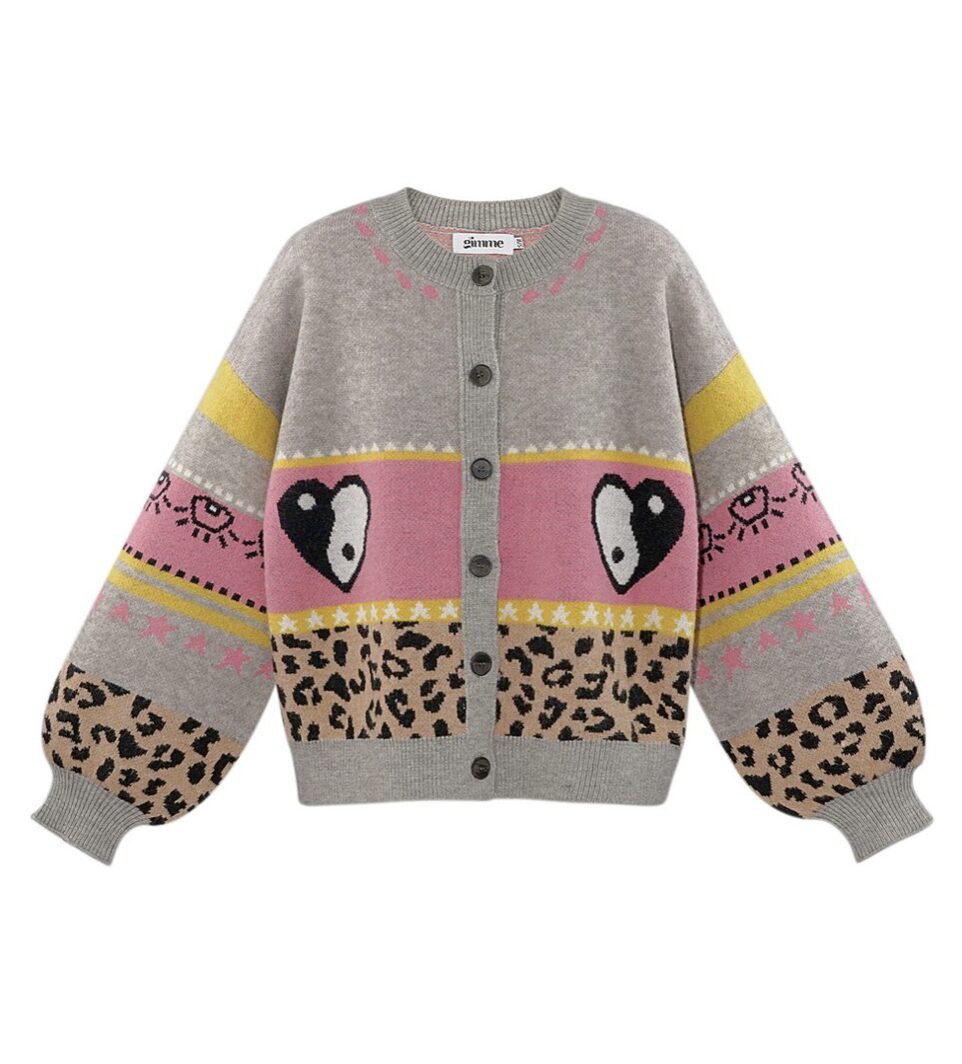 Gebreide wolmix vrouwen cardigan oversized gepatroneerd ontwerp grijs