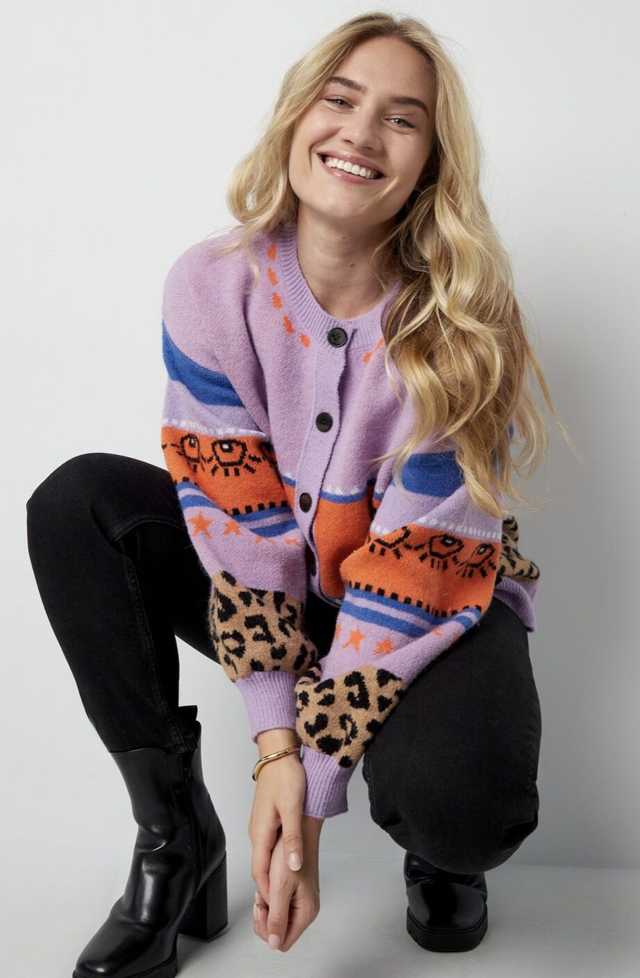 Deze gebreide wolmix cardigan combineert comfort met uitgesproken stijl dankzij de oversized pasvorm en het unieke patroon. De mix van luipaardprint, hartmotieven en geometrische strepen maakt dit item tot een opvallend statement binnen elke collectie. Gemaakt van hoogwaardige garens voor een duurzame kwaliteit en rijke textuur. Als onderdeel van het Chloe-merk staat deze cardigan voor innovatief design en premium afwerking.