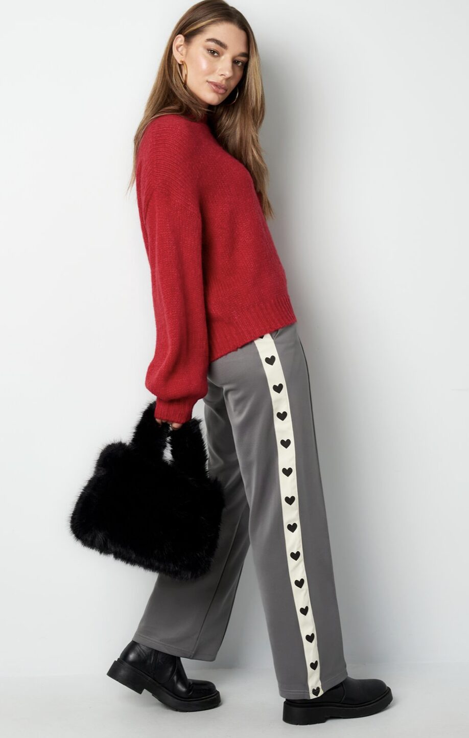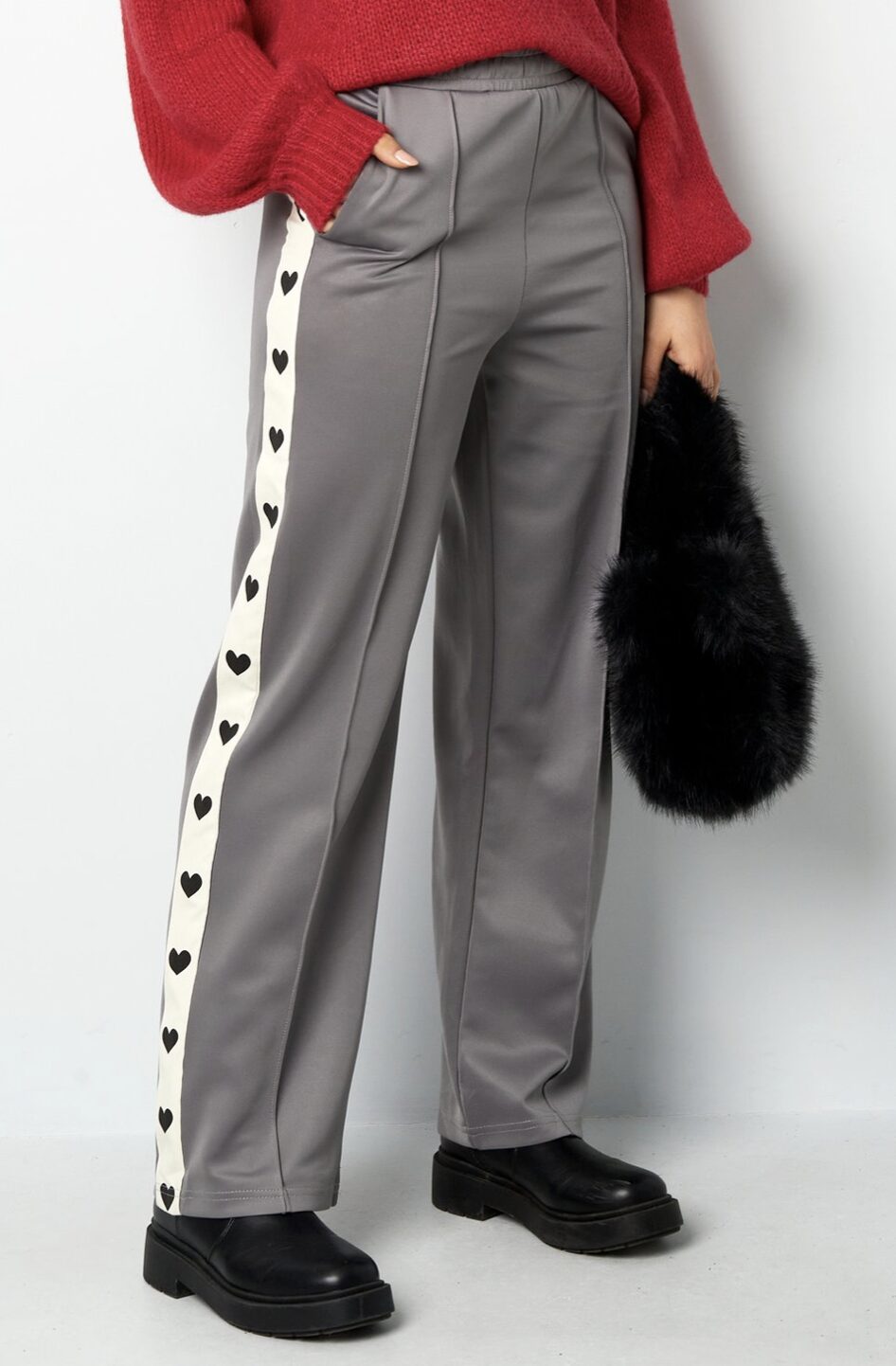 Deze geweven damesbroek met rechte pijpen combineert een moderne, sportieve uitstraling met comfort. Het verticale zijpaneel met herhalend hartpatroon zorgt voor een opvallend en herkenbaar detail. Gemaakt van duurzaam materiaal dat makkelijk te onderhouden is. Ideaal voor veelzijdige verkoopkanalen en geschikt voor elk seizoen.