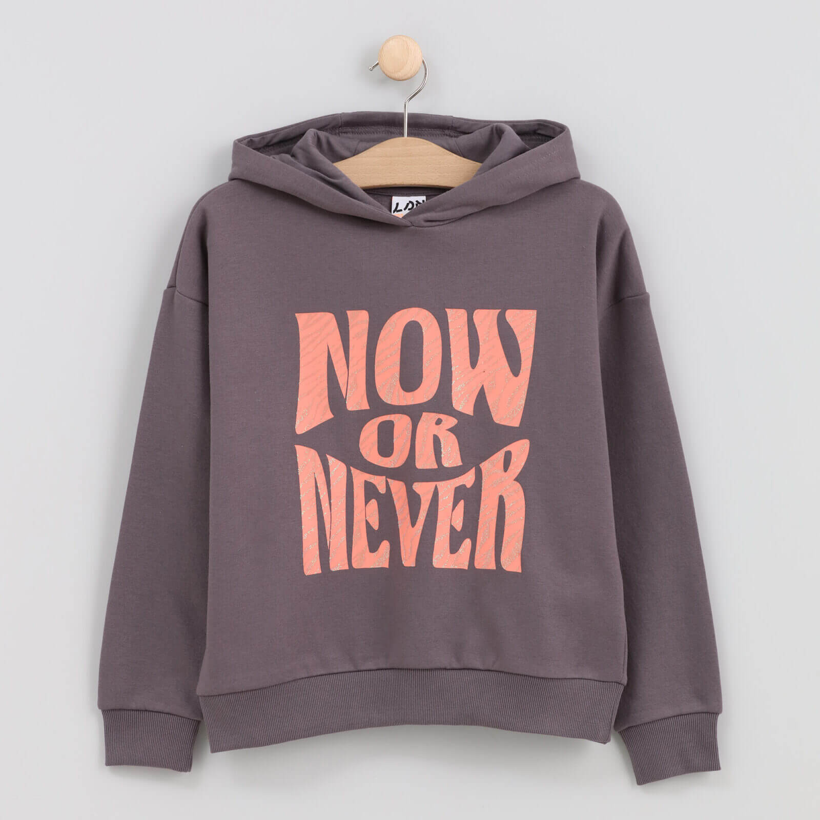Super leuke hoodie van het merk Losan voor meisjes. Op de voorzijde staat een print ‘NOW OR NEVER’.