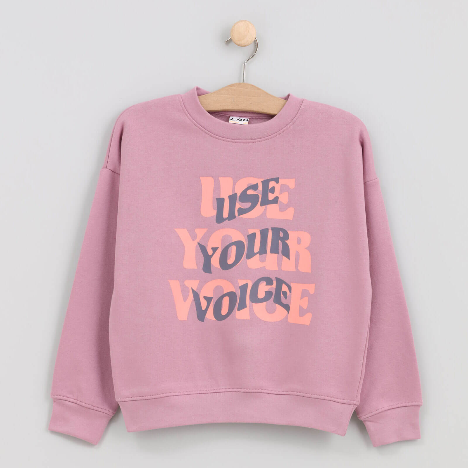 Sweater van het merk Losan voor meisjes. Op de voorzijde staat de tekst USE YOUR VOICE.